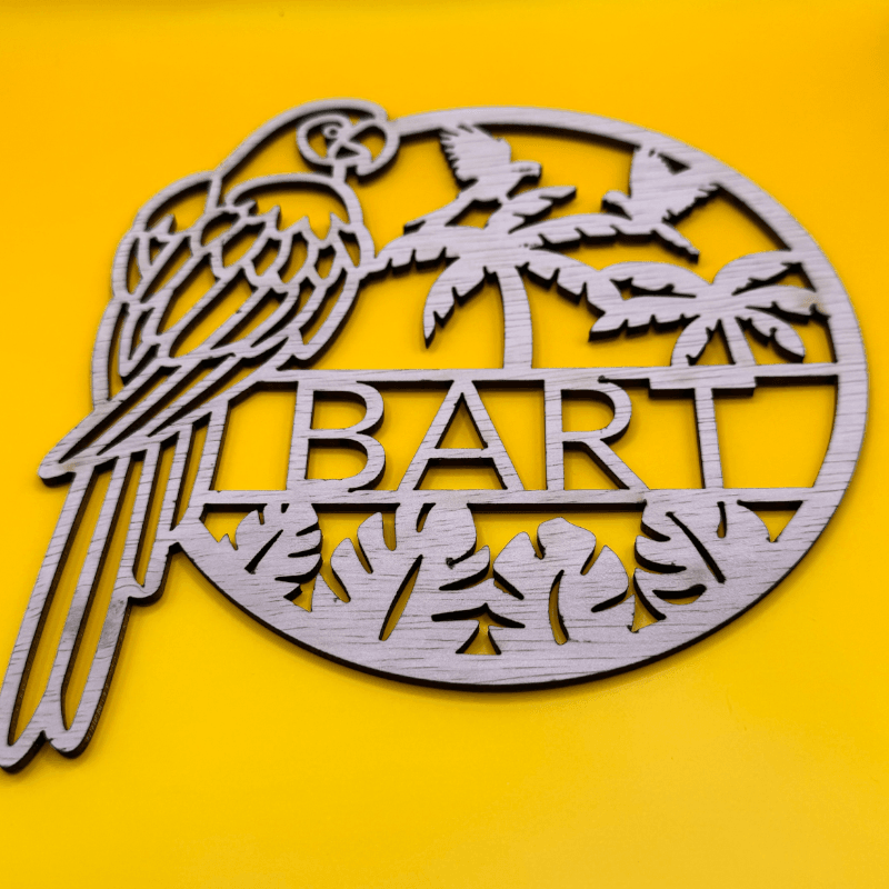 Breng een vleugje tropisch avontuur naar de kinderkamer met ons prachtige houten naambordje! Dit unieke bordje, gemaakt van natuurlijk hout, is versierd met een vrolijke afbeelding van een papegaai en palmbomen, waardoor het een speelse en uitnodigende sfeer creëert. Perfect om aan de muur te hangen of op de deur van de kinderkamer te bevestigen, zorgt dit naambordje voor een persoonlijke en gezellige touch.