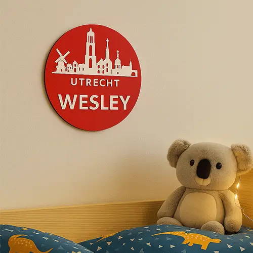 Haal met dit unieke naambordje een (extra) stukje Utrecht in huis. Voorzien van jouw eigen naam is dit een naambordje die je met trots mag ophangen aan jouw deur of muur. Het is volledig gemaakt van hout en voorzien van de kenmerkende Utrechtse kleuren.