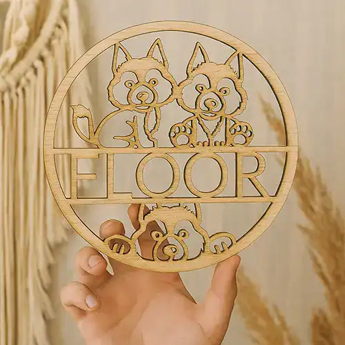 Breng warmte en persoonlijkheid aan je deur met dit prachtige houten naambordje! Het speelse ontwerp met drie wolfjes trekt meteen de aandacht. Perfect voor kinderkamers en/of als uniek cadeau. Gemaakt van hoogwaardig hout, met zichtbare nerven voor een natuurlijke uitstraling.